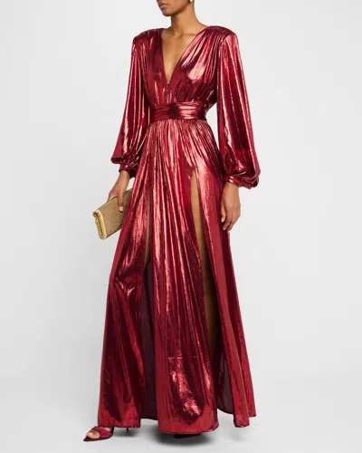 BRONX AND BANCO Zoe Metallic Deep V-neck Gown In Red