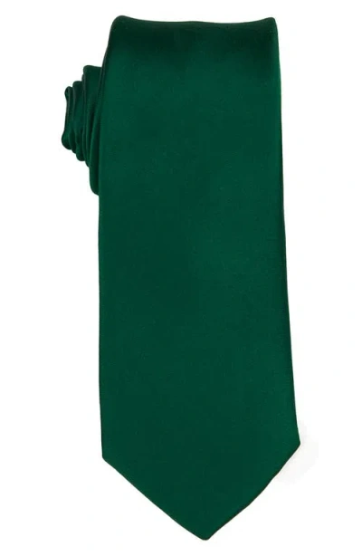 BROOKLYN BRIGADE Solid Satin X-long Tie In Emerald