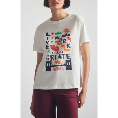 BROOKLYN INDUSTRIES Live Work Create Graphic T-shirt In White