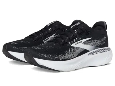 Brooks Adrenaline GTS 25 - Women's Running Shoes : Black/Grey/White : ; The Brooks Adrenaline GTS 25 shoe features a 3 mm of added DNA LOFT v3 cushioning in the forefoot and 1 mm in the heel, enhancing comfort and responsiveness. The nitrogen-infused DNA LOFT v3 midsole delivers lightweight softness and dynamic energy return, while the GuideRails support system helps reduce excess movement from heel to knee, promoting a smoother stride. The shoe's engineered mesh upper and flatknit collar offer a secure, breathable fit, making it ideal for runners seeking a balance of support and plush cushioning. With its 10 mm offset, the Adrenaline GTS 25 maintains the trusted geometry of its predecessors while improving underfoot feel for distraction-free miles. ; Nylon lining and ethylene vinyl acetate insole. ; PDAC A5500 Approved: Pricing, Data Analysis and Coding A5500 Diabetic Medicare Coding is awarded to footwear that is available in three or more widths, with a removable insole (sock-liner). These attributes may allow a footwear style to be deemed an extra-depth shoe. It also allows individuals to pay for their footwear through their Medicare. PDAC must be applied for on a yearly basis and is not automatically available to styles that meet its criteria. For more specific info, visit the Medicare website or call 1-800-MEDICARE. ; APMA Approved: The American Podiatric Medical Association Seal of Acceptance is awarded to products that promote good foot health and are substantiated by a committee of discerning podiatrists by wear-testing and review of the application and supporting documentation. APMA Acceptance must be applied for and is not automatically available to styles that meet its criteria. ; Lace-up closure. ; Low-top, round toe silhouette. ; Rubber outsole. ; Imported. Measurements: ; Heel Height: 1 in ; Weight: 9.5 oz ; Product measurements were taken using size 6, width B - Medium. Please note that measurements may vary by size. | Brooks Adrenaline GTS 25 Women's Running Shoes Black/Grey/White : 5.5 B - Medium, Textile