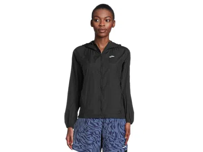 Brooks Canopy Packable Jacket - Women's Jacket : Black : The primary materials that compose this product contain a minimum of 20 percent recycled content. ; Stay ready for any forecast wearing the Brooks Canopy Packable Jacket. Crafted from eco-conscious DWR fabric made without PFAS, it keeps you dry while keeping the planet in mind. The semi-fitted design moves with you, while long sleeves, elasticized cuffs, and a smart hood visor shield you from wind and drizzle. A zipper guard at the chin prevents chafing for distraction-free runs or commutes. Best part? It packs down small so you can stash it and dash at a moment's notice. ; 100% recycled nylon. ; Machine washable. ; Imported. | Brooks Canopy Packable Jacket Women's Jacket Black : 2XL (Women's 20-22), Nylon