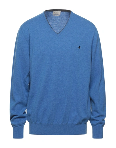 BROOKSFIELD Sweaters. knitted, embroidered detailing, brand logo, lightweight knit, v-neck, two-tone, long sleeves, no pockets. 100% Virgin Wool
