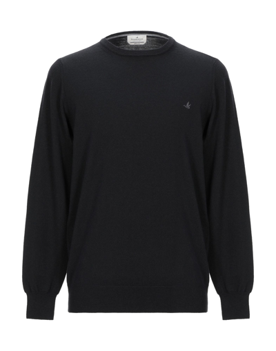 BROOKSFIELD Sweaters. knitted, logo, lightweight knit, round collar, solid color, long sleeves, no pockets, mélange. 100% Virgin Wool