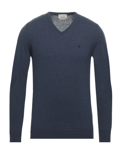 BROOKSFIELD Sweaters. knitted, brand logo, lightweight knit, v-neck, solid color, long sleeves, no pockets, mélange. 100% Virgin Wool
