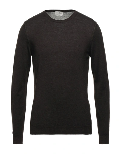 knitted, logo, lightweight knit, round collar, solid color, long sleeves, no pockets , Color: Dark brown , Size: 46