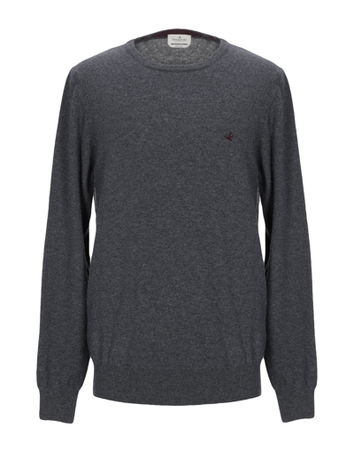 knitted, lightweight knit, brand logo, solid color, round collar, long sleeves, no pockets, mélange , Color: Steel grey , Size: 46