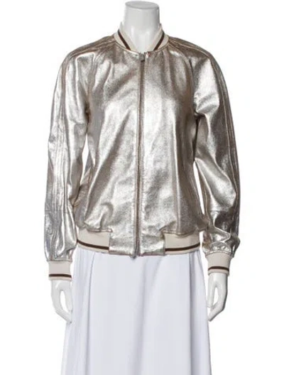 Brunello Cucinelli Bomber Jacket Metallic & Silver Stand Collar Slit Pockets & Zip Closure Designer Fit: Jackets by Brunello Cucinelli typically fit true to size. | Brunello Cucinelli Bomber Jacket in Metallic/Silver, Women's US6, IT42 | M
