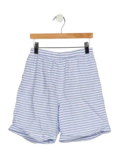 Boys white and blue striped Brunello Cucinelli pajama shorts with elasticized waistband and embroidered accent at back. | Brunello Cucinelli Patterned Pajama Shorts in Blue/White, Boys' 4