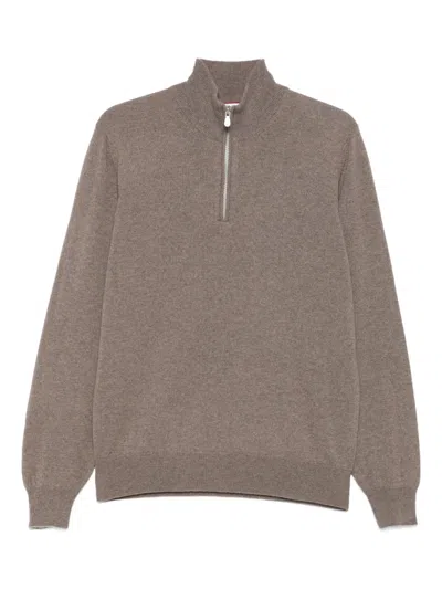 BRUNELLO CUCINELLI Cashmere Sweater With Half Zip In Brown