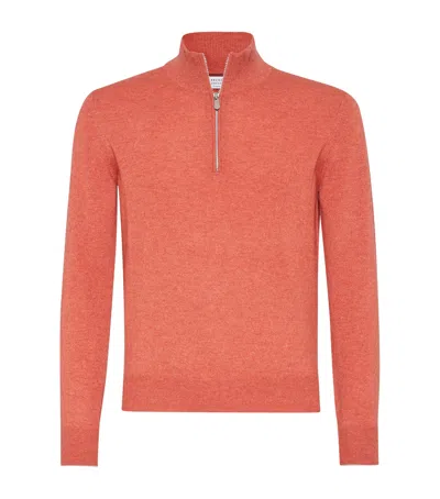 BRUNELLO CUCINELLI Cashmere Sweater With Half Zip In Red