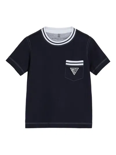 BRUNELLO CUCINELLI Kids' Embroidery-pocket Cotton T-shirt In Blue