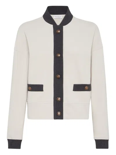 BRUNELLO CUCINELLI Felpa Buttoned Bomber Cardigan In Neutral