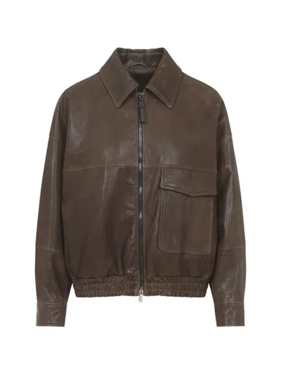 BRUNELLO CUCINELLI Flap-pocket Leather Jacket In Brown