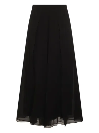 BRUNELLO CUCINELLI High Waist Pleated Skirt With Sheer Overlay In Black