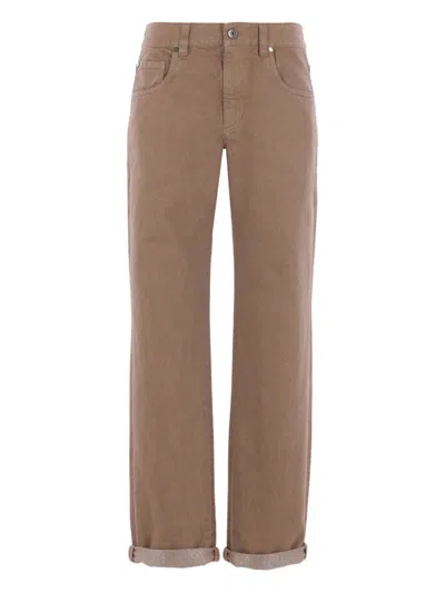 BRUNELLO CUCINELLI Logo-patch Jeans In Brown