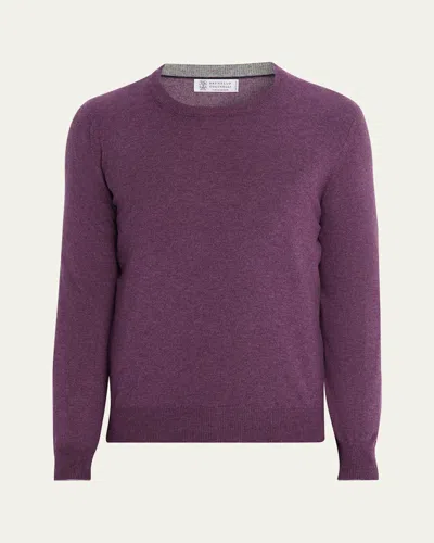 BRUNELLO CUCINELLI Men's Cashmere Crewneck Sweater In Purple