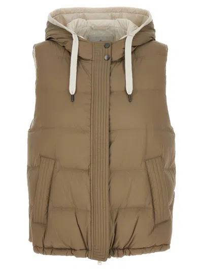 BRUNELLO CUCINELLI Quilted Hooded Sleeveless Vest Drawstring In Beige