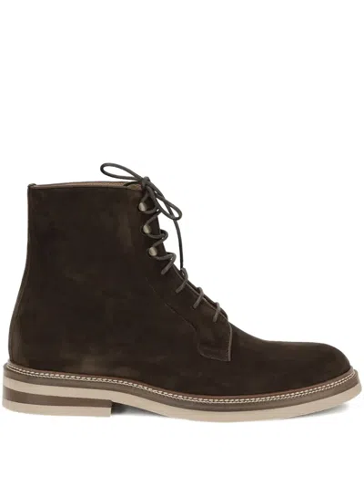 BRUNELLO CUCINELLI Round Toe Boots Stacked Heel Suede In Brown