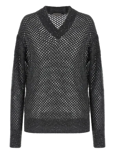 BRUNELLO CUCINELLI Net V-neck Sweater In Black