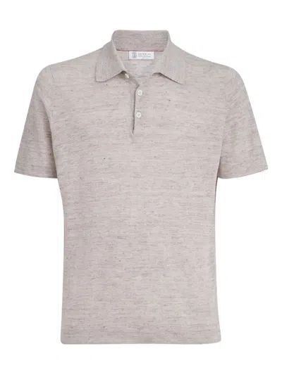 BRUNELLO CUCINELLI Short-sleeves Knit Polo Shirt In Neutral