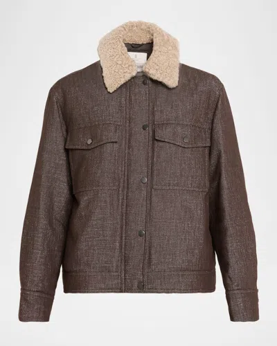 BRUNELLO CUCINELLI Sparkling Wool-blend Padded Jacket With Removable Shearling Collar In Brown