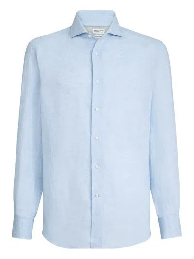 BRUNELLO CUCINELLI Spread-collar Shirt In Blue