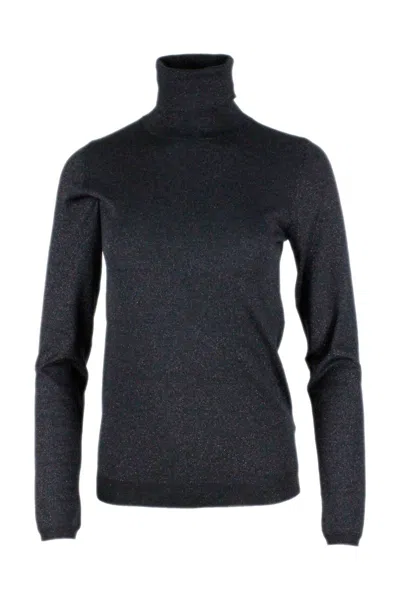 Art. M41800063 - C072 - Colour. GRAY - Materials: CASHMERE 51% SILK 22% POLYAMIDE 20% POLYESTER 20% - Sparkling Cashmere And Silk Pullover With High Neck - Regular Fit - Suitable for all temperatures , Color: Black , Size: XXL