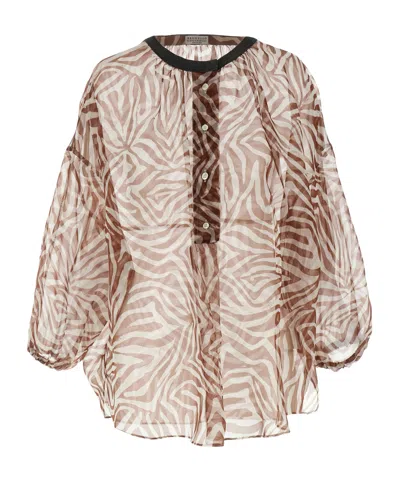 BRUNELLO CUCINELLI Zebra Pattern Silk Blouse With Button Detailing In Multi
