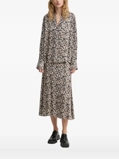 sand black abstract floral print front button fastening long sleeves cuffed sleeves classic collar