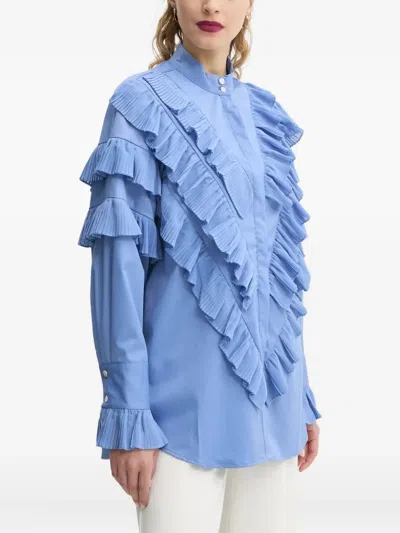 Pleated Ruffle Blouse In Blue