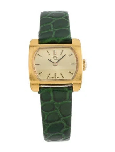 23mm x 23mm Case Dimensions Stainless Steel, Gold-Tone Metal & Gold-Tone Manual Movement Smooth Bezel Gold Dial Green Leather Strap Tang Buckle | Bucherer Classic Watch