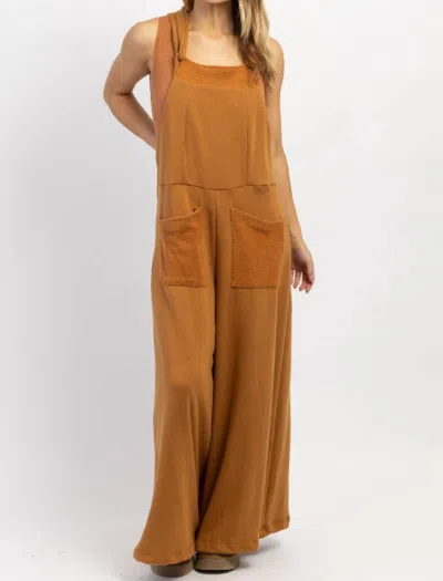 BUCKETLIST Moxie Relaxed Cotton Jumpsuit In Rust In Yellow