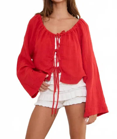 BUCKETLIST Reyna Tie Front Solid Textured Blouse In Red