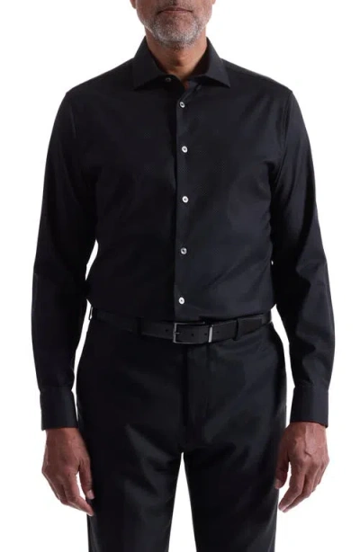 BUGATCHI Axel Shaped Fit Jacquard Button-up Shirt In Black