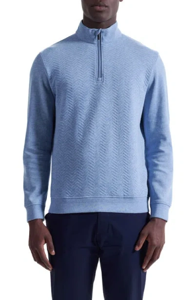 BUGATCHI Chevron Quarter Zip Cotton Blend Pullover In Blue