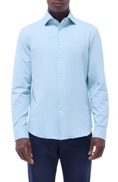BUGATCHI Devon Micro Houndstooth Ooohcotton® Button-up Shirt In Turquoise