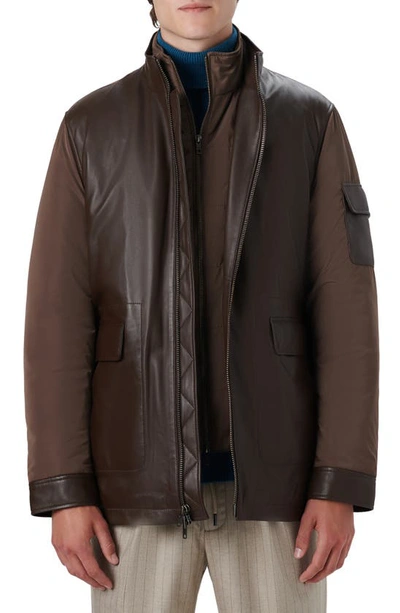 BUGATCHI Full Zip Leather Bomber Jacket With Removable Bib In Chocolate