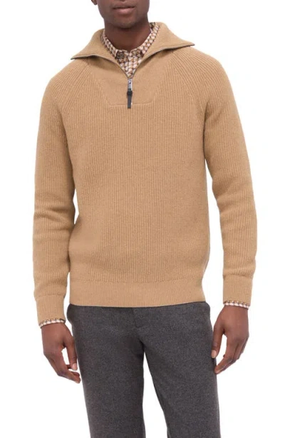 BUGATCHI Half Zip Wool Blend Pullover Sweater In Caramel