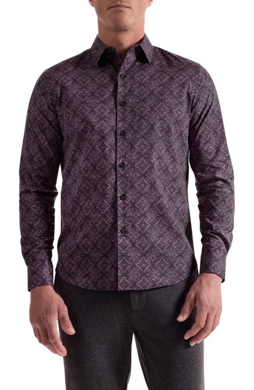 A refined geo-print shirt is made from Italian cotton with a hint of stretch for a tailored fit and easy movement. 30" length; 44" chest Front button closure Spread collar Long sleeves with button cuffs 97% cotton, 3% elastane Machine wash, dry flat Imported