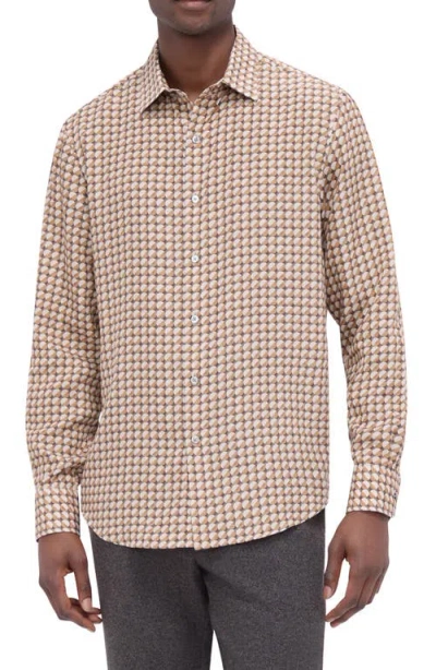 BUGATCHI Julian Shaped Fit Print Button-up Shirt In Caramel