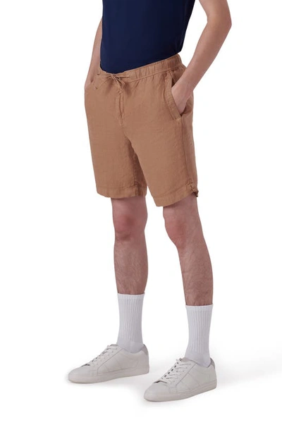 BUGATCHI Linen Drawstring Shorts In Caramel
