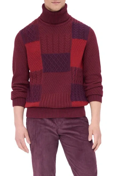 BUGATCHI Pattern Wool Blend Turtleneck Sweater In Ruby
