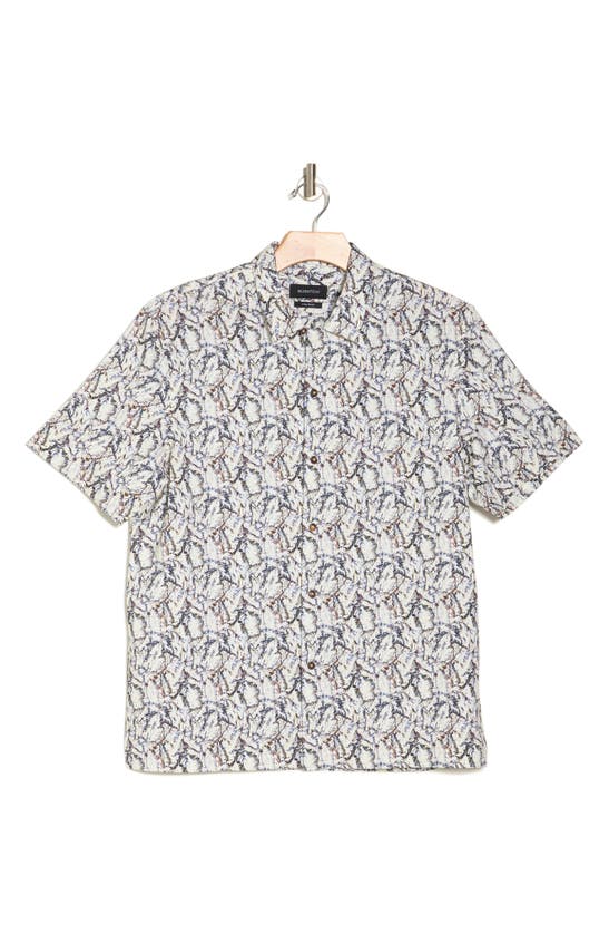 Print Short Sleeve Stretch Cotton Button-up Shirt In Soy