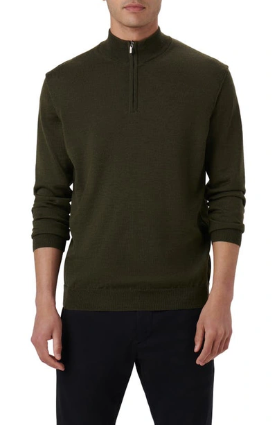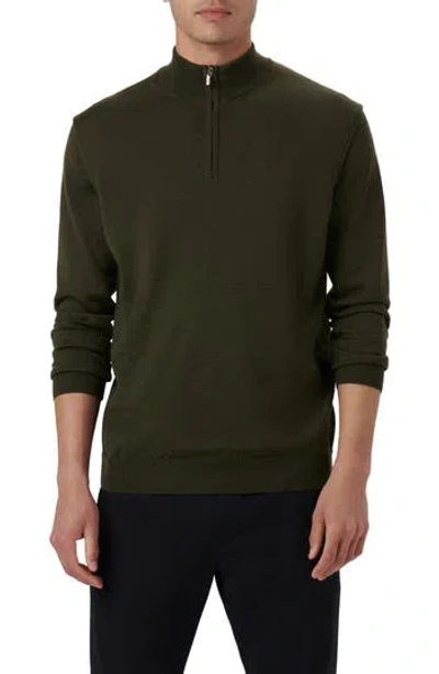 BUGATCHI Quarter Zip Merino Wool Pullover In Khaki