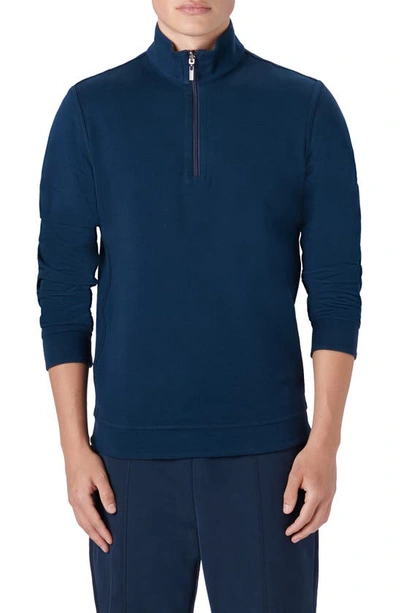 BUGATCHI Reversible Knit Quarter Zip Pullover In Navy