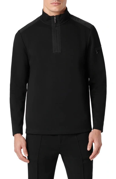 BUGATCHI Soft Touch Quarter Zip Pullover In Caviar
