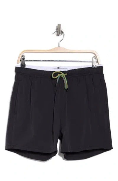 A colorful drawstring tie secures the waist of these lightweight swim trunks made from quick-drying fabric built with resistance to UV rays, chlorine, salt and sunscreen. 6 1/4" inseam; 11 1/2" leg opening; 10 1/4" rise (size Medium) Elastic/drawstring waist On-seam pockets Back flap-patch pocket with drainage grommets Lined 100% polyester Machine wash, dry flat Imported