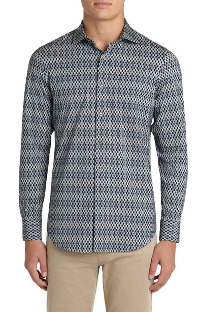 BUGATCHI Tech Patterned Knit Stretch Cotton Button-up Shirt In Graphite