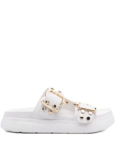 BUGATTI Buckle-studded Slides In White