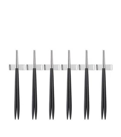 Set Of 6 Stainless Steel Ares Chopsticks In Black